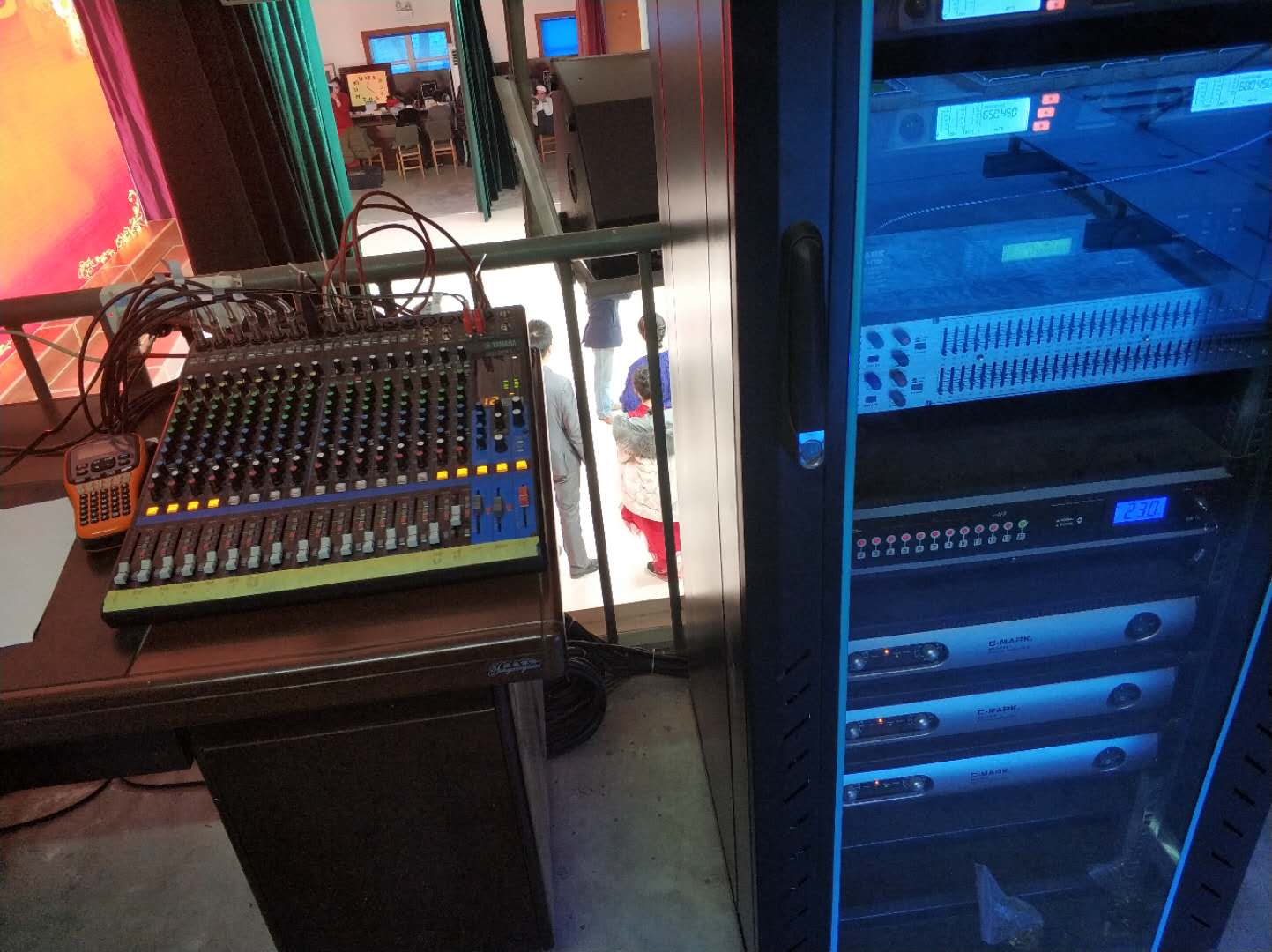 中國兵器焦作平原光電有限公司作為一家軍工企業(yè),報告廳擴(kuò)聲這塊有較高的要求,在此基礎(chǔ)上針對報告廳,在舞臺兩側(cè)設(shè)計4只15寸的全頻音響,每兩只一組分別壁掛安裝與舞臺兩側(cè),作為整個報告廳的主擴(kuò)聲音響,在中后場的位置設(shè)計安裝4只輔助全頻音響,使中后場的觀眾可以聽到均勻的擴(kuò)聲感受。
