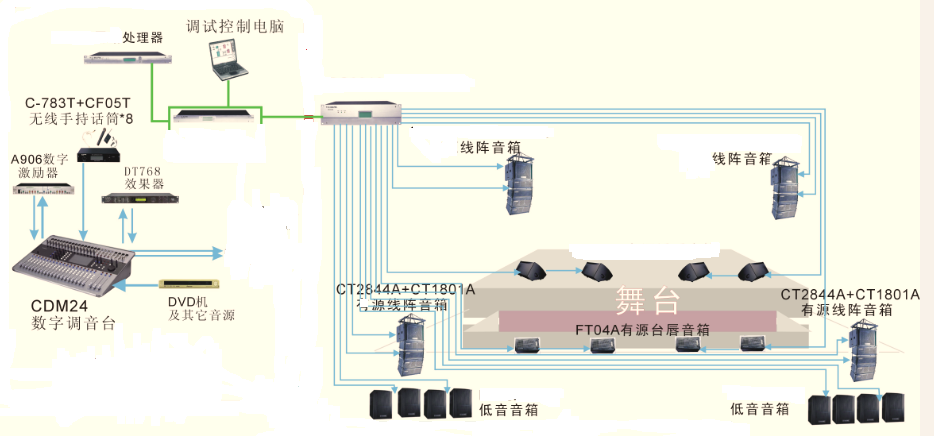 點,還必須對歌舞類演出有較好的音質(zhì)還原,整個系統(tǒng)有較好的動態(tài)余量,同時還需具有先進