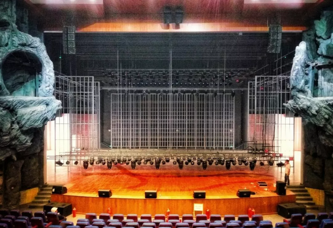 本項(xiàng)目設(shè)計(jì)思路清晰,作為一個縱深不大,臺口較寬的劇場。設(shè)計(jì)上不再采用傳統(tǒng)的后排補(bǔ)聲音箱布置,而是采用兩側(cè)(Versarray 112 MKII)主線陣列的聲音直接覆蓋中后場。得益于舞臺足夠的高度,可以在線陣吊掛時(shí)得到一個完美的高度與角度,兼顧中場與后場的聲壓級均勻度。同時(shí)又免除補(bǔ)聲音箱對聲音瞬態(tài)反應(yīng)和定位感的影響。前排使用優(yōu)秀的點(diǎn)聲源擴(kuò)聲系統(tǒng)作為主擴(kuò),滿足前排觀眾的需求,再配以兩只雙18"的超低頻音箱,足以為整個場地提供震撼而有感染力的低頻能量。作為專業(yè)劇目演出,中置的配置非常重要,尤其在于人聲表現(xiàn)方面,需要足夠的覆蓋以滿足其直達(dá)定位。因此中置也采用了聲壓級和動態(tài)極佳的兩個點(diǎn)聲源揚(yáng)聲器系統(tǒng),專門作為傳遞演員對白和后臺旁白。